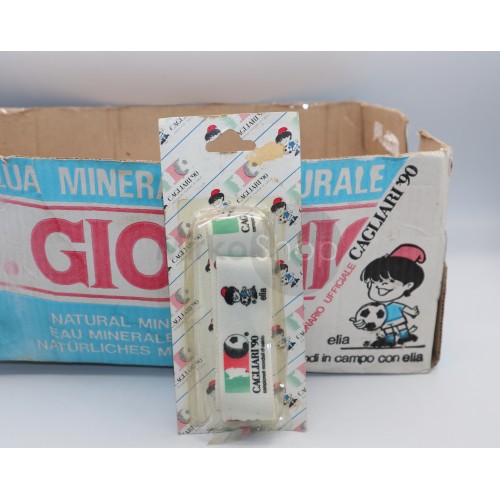 Direttamente da fondo di magazzino originale, proponiamo uno straordinario lotto di merchandising dedicato ai Campionati Mondiali di Calcio Italia 1990, nello specifico alla produzione locale Cagliari ’90 con la mascotte Elia.